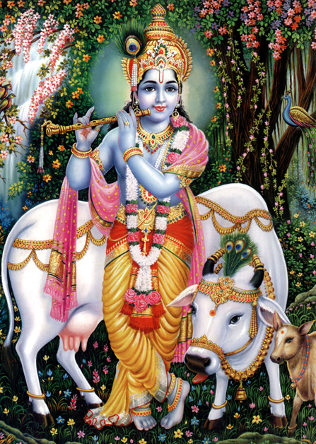 Это объяснение основано на "Вишну-пуране". Он продолжает объяснять, что не существует разницы между телом и душой Бога. Они суть одно и то же. Поскольку у Кришны, Верховного Господа, две руки, он играет на флейте, у него трансцендентный облик, состоящий из вечности, знания и блаженства, и он известен под именами Говинда и Гопал.