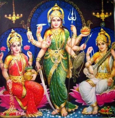- Шайлапутри - является Шакти трех богов - Брахмы, Вишну и Шивы. Она восседает на быке и держит в своих руках трезубец и цветок лотоса.